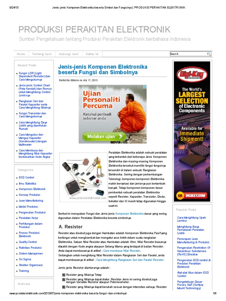 Komponen komponen Elektronika Sains Entertaining and Sumber : blog.unnes.ac.id